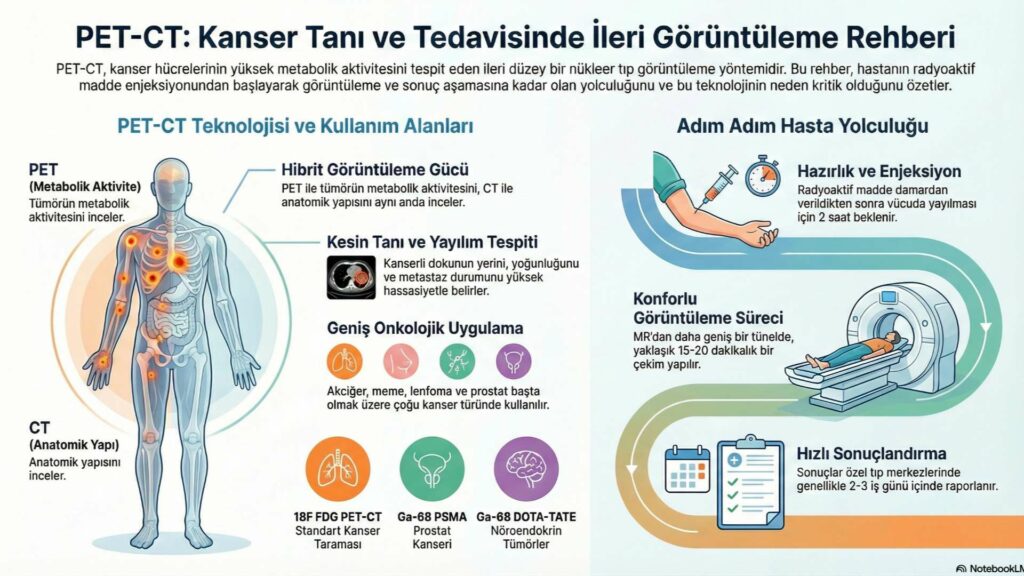 PET-CT; kanser hücrelerinin yüksek metabolik aktivitesini anatomik detaylarla birleştirerek tümörün lokalizasyonunu, yoğunluğunu ve yayılımını hassasiyetle belirleyen ileri düzey bir nükleer tıp görüntüleme yöntemidir.